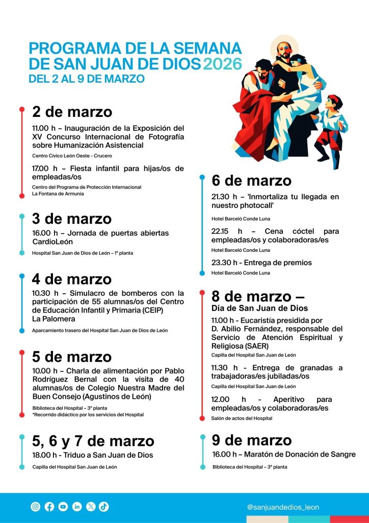 El Hospital San Juan de Dios de León celebra una nueva edición de su Semana San Juan de Dios, un espacio de encuentro, participación y apertura a la sociedad que refleja el compromiso de la institución con la atención humanizada y el cuidado integral de las personas.