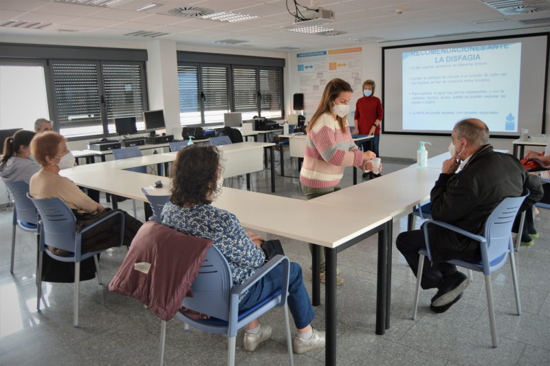 Ya en una segunda etapa se persigue dotar de conocimientos suficientes acerca de los cuidados que va a prestar al paciente en el domicilio, relacionados con las actividades básicas de la vida diaria para “disminuir los miedos y la inseguridad a la hora de manejar distintas situaciones”. Así, se proporciona a los asistentes pautas para el manejo de la disfagia en personas con problemas de deglución y de la incontinencia en pacientes con pérdidas involuntarias de orina o heces.