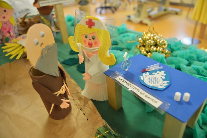 Realizado con los tubos de cartón en los que se enrolla el papel higiénico, su “originalidad” es su seña de identidad, en palabras de Poovathinkal. Y es que, según ha apostillado Villanueva, “el nacimiento de la COVID-19 en el castillo de Herodes, del que salen coronavirus, derrocha ingenio”.