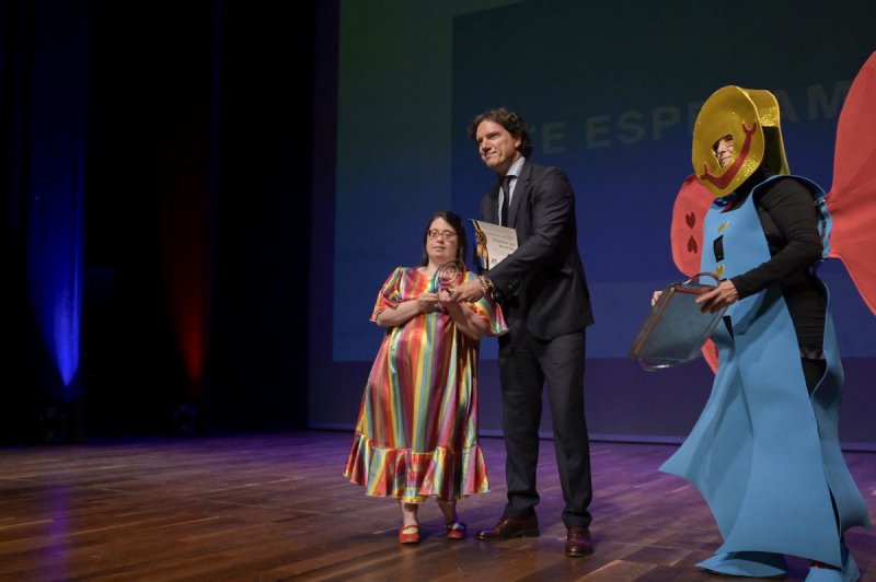 En el marco de la gala celebrada ayer en el Auditorio Ciudad de León, el director gerente del centro médico-quirúrgico, Juan Francisco Seco, recogió de manos de Lady Isabel, la primera diseñadora española con síndrome de Down, un reconocimiento a la labor con personas en situación de vulnerabilidad en los diferentes ámbitos de actuación a los que se dedica la institución.