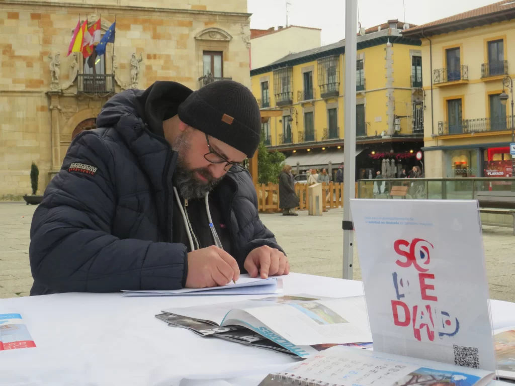 Personas voluntarias de acompañamiento hospitalario se han dado cita este jueves en el centro de la ciudad en el marco de una campaña que persigue ofrecer un “acto real de conexión y compañía” durante la Navidad a los mayores ingresados • “Aquí dentro, el tiempo pasa diferente. Las horas se alargan, los días pesan… y aunque estoy bien cuidado, hay algo que duele más que cualquier síntoma: la soledad”, asegura Ángel, protagonista del vídeo lanzado con el apoyo de la Cultural y Deportiva Leonesa • “Unas palabras bastan para que alguien se sienta acompañado y para transformar su día”, recuerda Laura Abril, responsable de Solidaridad, quien ha recordado que cualquier persona puede responderles a través de la página web.