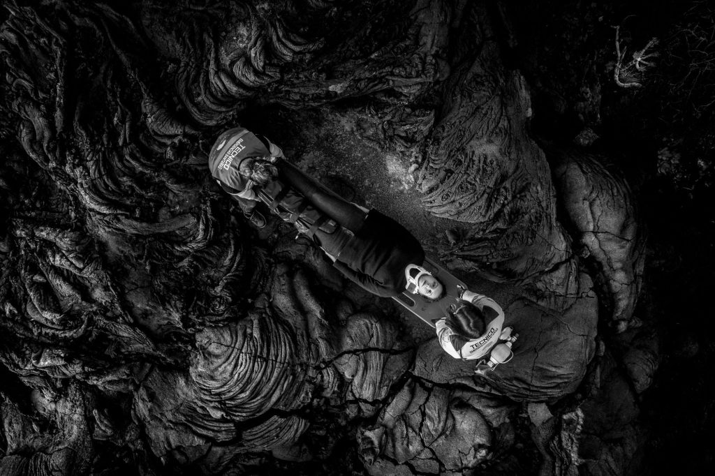 “En el corazón de un paisaje de lava solidificada, una escena de rescate se despliega con sobrecogedora intensidad. La textura de la roca, esculpida por el fuego, contrasta con la fragilidad humana, mientras los rescatistas desafían un terreno hostil para salvar una vida. Una imagen que refleja la lucha entre la naturaleza implacable y la determinación humana”, ha explicado su autor.